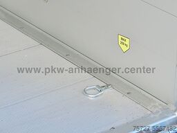 The extensive standard equipment of the car trailer includes a poly roof and poly front in one piece, aluminum walls, aluminum floor, side door, folding door system, 100km/h, interior light, automatic support wheel, lashing eyes, stable frame and a V-drawbar.